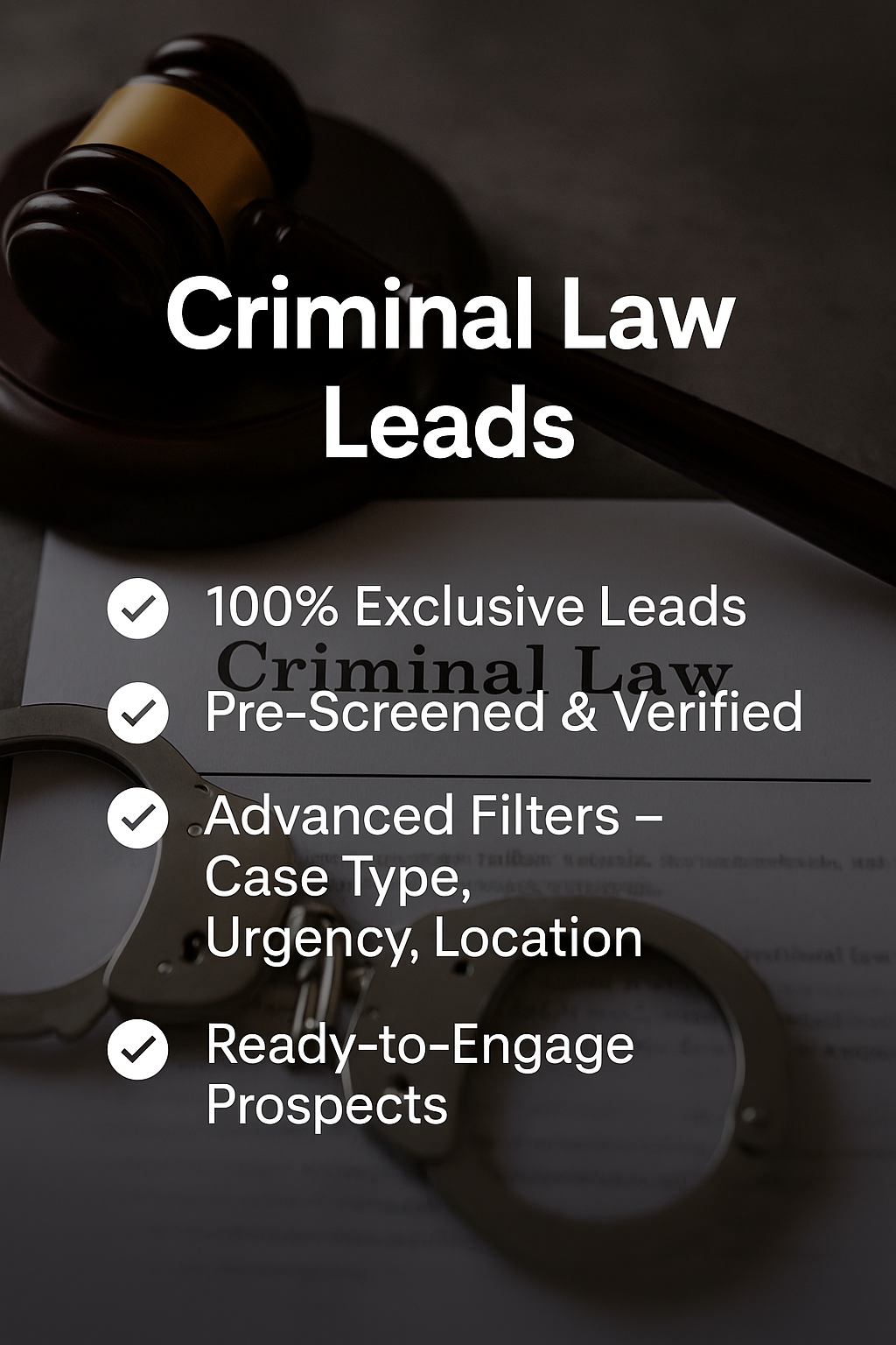 Each criminal law lead is carefully screened for authenticity and urgency, ensuring your firm spends time only on serious inquiries. These are individuals ready to take action — not passive browsers.